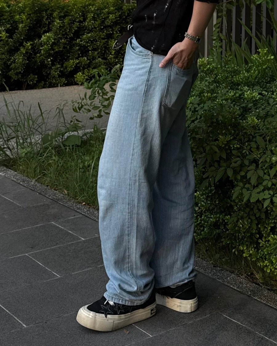 原色堆積感牛仔褲