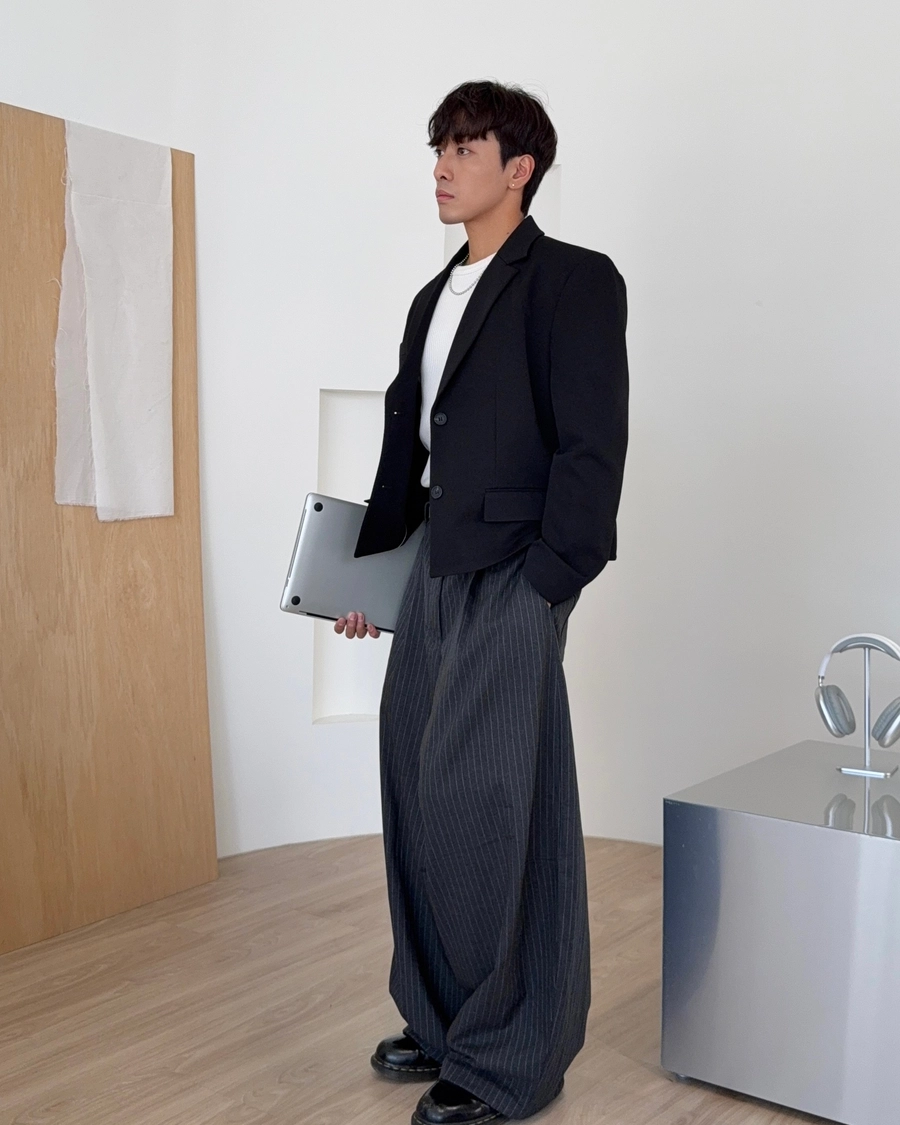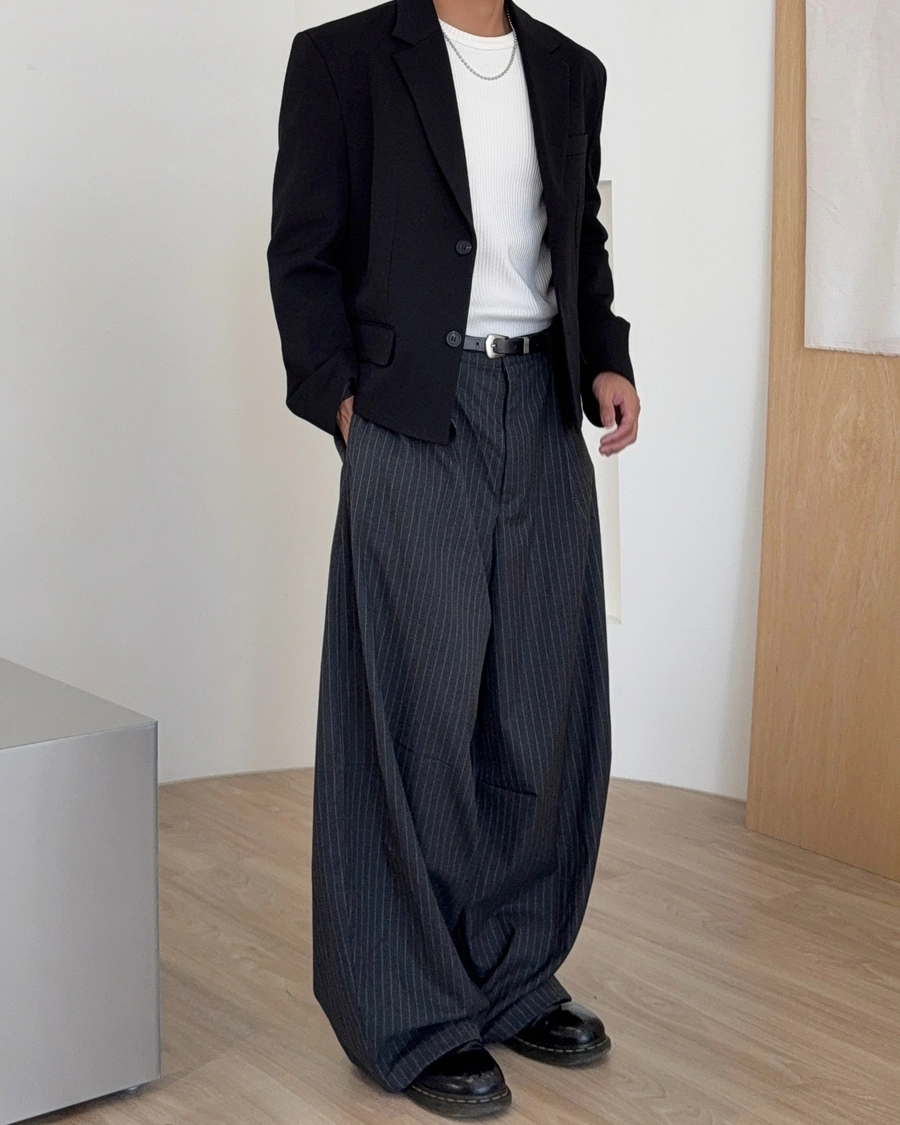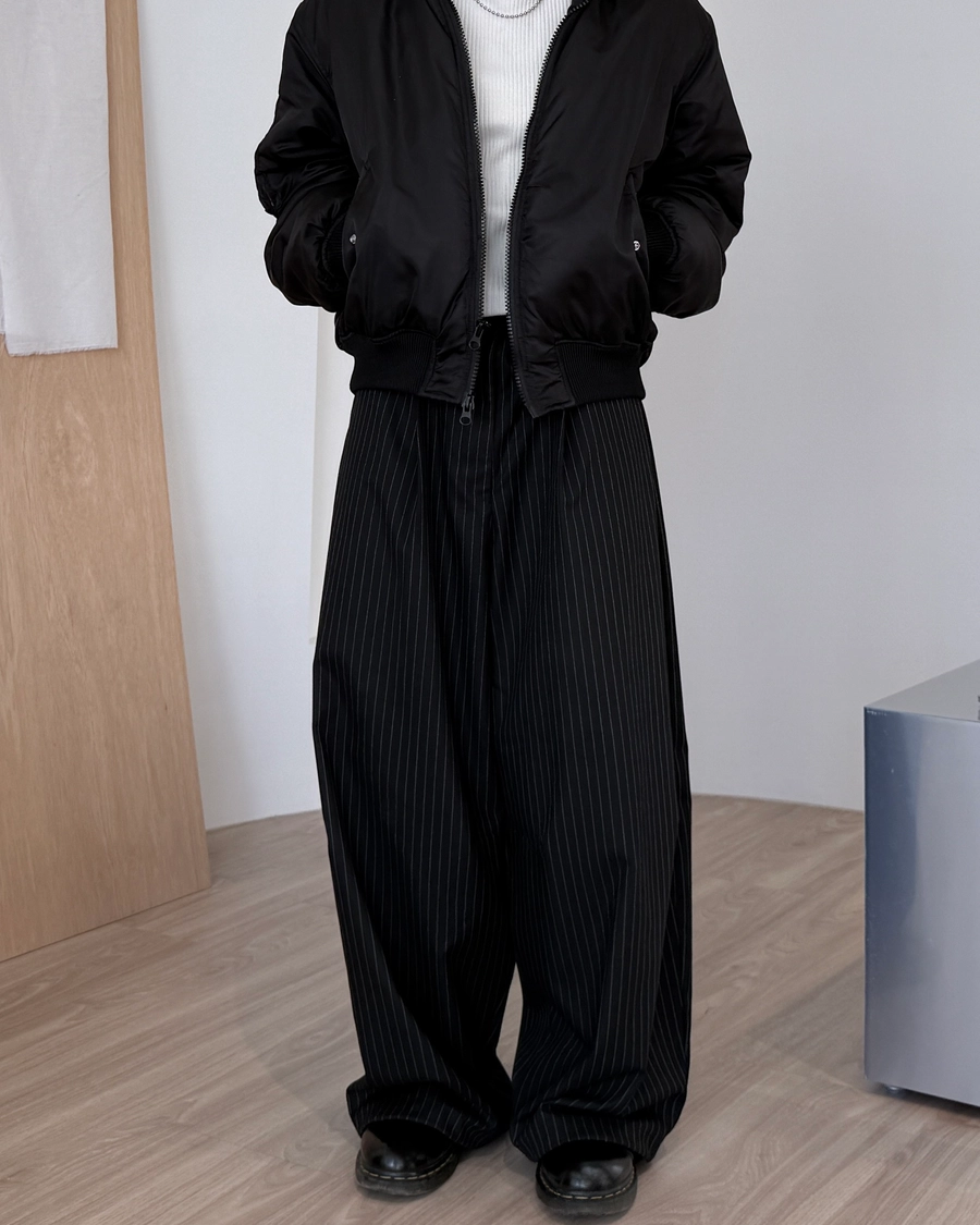 垂墜感條紋西褲